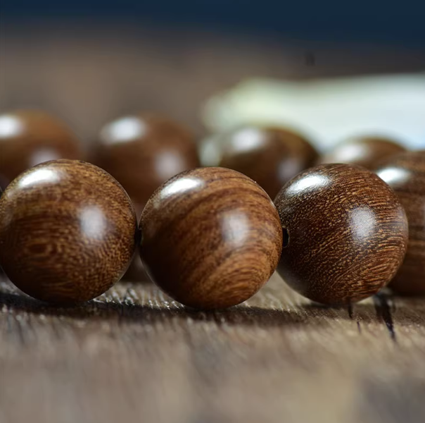 🪵 Living Grain — Every bead carries distinct rings and “silk” streaks; the bracelet develops richer patina and a soft woody scent over time.